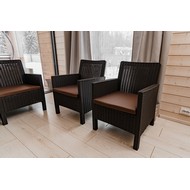 Комплектация: кресло с подушкой - 2 шт., столик - 1 шт, диван трехместный с подушкой - 1 шт.
