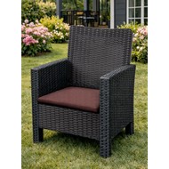 Комплект 2 садовых кресла, трехместный диван и столик под ротанг СадКо (темно-серый с коричневыми подушками)
