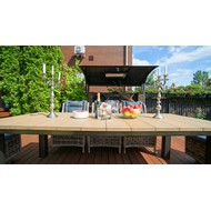 Материалы - нержавеющая сталь (каркас), искусственный ротанг (плетение), древесно-полимерный материал (столешница), ткань olefine (подушки)