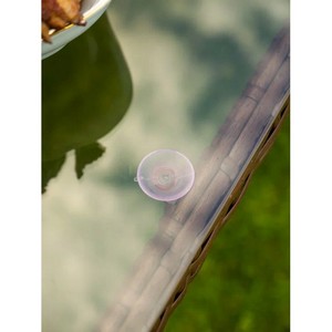 Стол со стеклянной столешницей визуально облегчает композицию и позволяет любоваться красивым плетением основания.