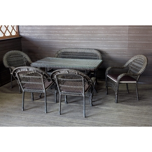 Комплект мебели из искусственного ротанга Мэдисон Нью двухместный диван и 4 кресла и стол с подушками на сиденье