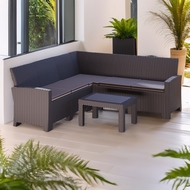 Дизайн пластика под ротанг придает мебели естественный вид и гармонично сочетается с любым ландшафтом.