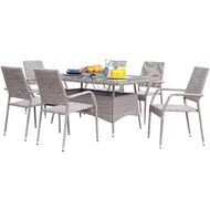 Материалы: алюминиевый каркас оплетён высококачественным искусственным ротангом, столешница выполнена из стекла.