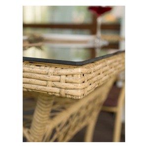 Искусная оплетка из искусственного ротанга придает комплекту изысканный вид.