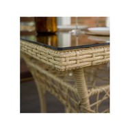 Материал изделия: каркас - металл с порошковым покрытием, плетение - искусственный ротанг, столешница - закаленное стекло.