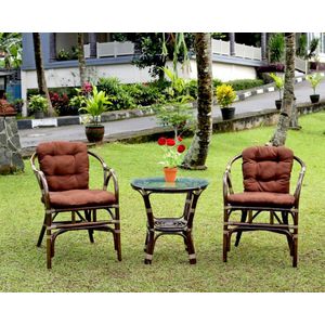 Материалы: каркас из натурального ротанга, столешница из стекла, подушки - чехлы из ткани твил.
