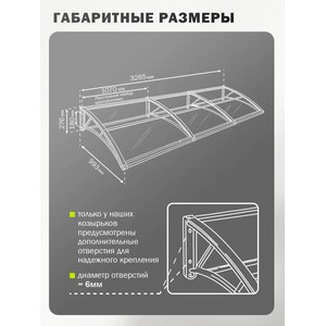 Козырек-навес защитный усиленный тройной обеспечит надежную защиту входной зоны и придаст фасаду завершенный, современный вид.