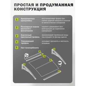 Надежный и стильный козырек из поликарбоната для защиты входной двери, крыльца и порога от дождя, снега и солнечных лучей.