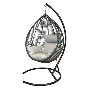 Кресло подвесное Элис (стойка и основание черные, корзина и подушка серые)