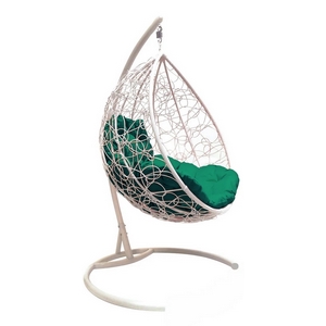 Кресло подвесное Кокон Капля иск.ротанг (белое с зелёной подушкой)