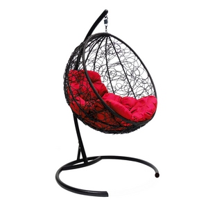 Кресло подвесное Кокон Круглое иск.ротанг (чёрное с красной подушкой)