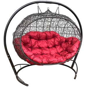 Подвесное кресло Улей Ротанг (чёрное с бордовой подушкой)