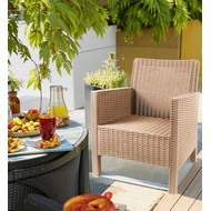 Стильное и практичное кресло с эффектным плетением под ротанг, созданное для комфортного отдыха в саду, на террасе или у бассейна.
