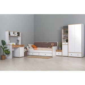 Кровать детская Вуди 11.02 (белый премиум, дуб золотой, савана латте)