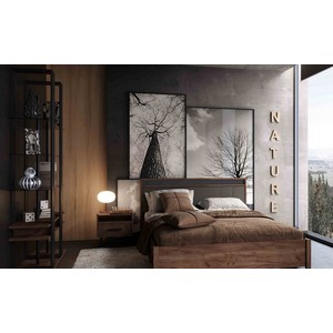 Кровать двуспальная Люкс Nature 308 с подъемным механизмом, 140х200 (дуб табачный craft-черный)