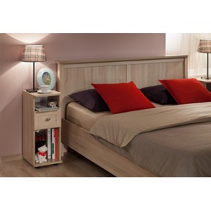 Верхняя фигурная планка на изголовье из толстой плиты ЛДСП шириной 7 см.