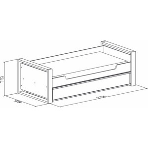 Кровать с большим ящиком глубиной 18,2 см на выкатных роликах.