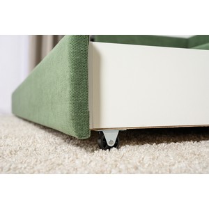 Кровать оснащена выдвижным ящиком с двумя отсеками.