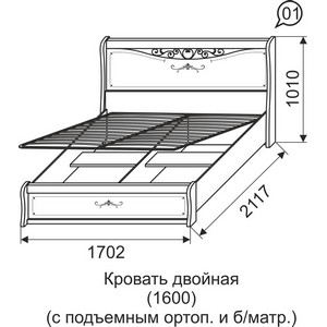 Кровать с подъемным механизмом 160х200 см Афродита (01, лиственница Сибио)
