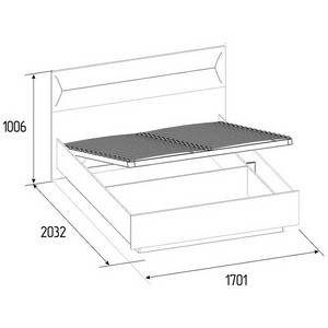 Подъемное основание оснащено газлифтами, под ним расположена дополнительная система хранения постельного белья и крупногабаритных вещей.