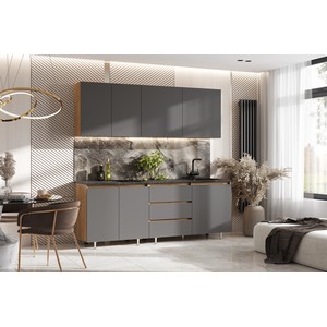 Кухня Челси 2,0м компоновка 2 (дуб крафт, графит-кастилло)