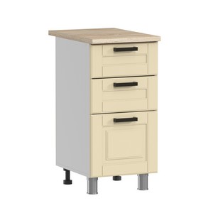 Кухонный гарнитур Аленушка 1 м с 3 ящиками Астра Крем, скоба черный, сонома