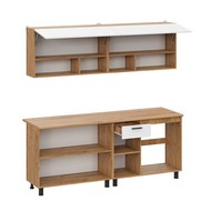 Уникальная особенность гарнитура – верхние шкафы можно переворачивать и устанавливать как с открытыми нишами сверху, так и наоборот, обеспечивая максимальную гибкость планировки.