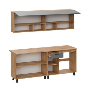 Кухонный гарнитур Монако 2 м выполнен в стильном сочетании цветовой гаммы дуб золотой, графит и дуб вотан.