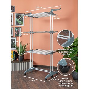 Напольная сушилка для вещей, включая полотенца и постельное белье.