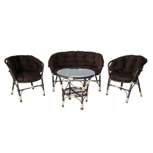 Набор мебели Багамы Лайт Х коричневый (диван плюс 2 кресла плюс подушки плюс стол со стеклом) искусственный ротанг