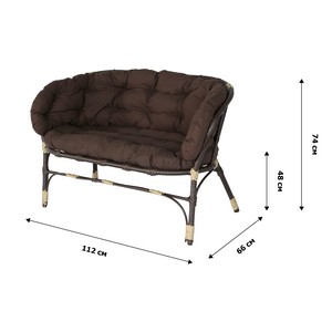 Материал: сталь (каркас), искусственный ротанг (поверхность), твил (чехол мягкого элемента), регенерированное волокно (наполнитель).