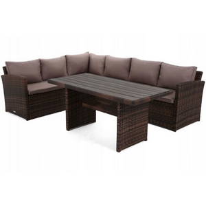 Комплектация: трехместный диван, диван с одной боковиной, стол, подушки коричневые