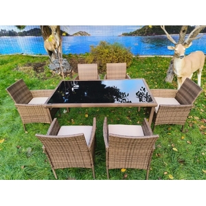 Комплект состоит из семи предметов - стол и шесть кресел.