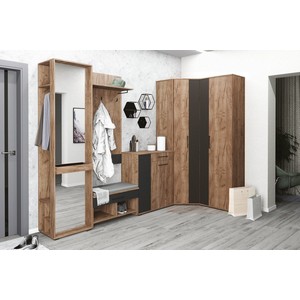 Мебель изготовлена из ЛДСП высокого качества и представлена в актуальном цветовом решении - сочетании дуба табачного и черного крафта.