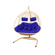 Подвесное кресло ДОБРЫНЯ с ротангом (бежевый с синей подушкой)