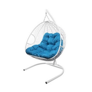Подвесное кресло Кокон ДЛЯ ДВОИХ ротанг (белый/голубой)