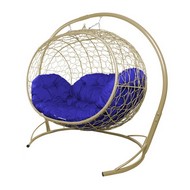 Подвесной диван УЛЕЙ с ротангом (бежевый с синей подушкой)