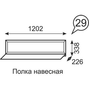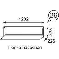 Размеры: ширина - 120,2 см, глубина - 22,6 см, высота - 33,8 см.