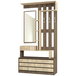 Центральная секция состоит из тумбы, вешалки для верхней одежды, полки для головных уборов, стеллажа и зеркала.