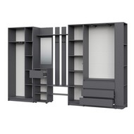 Комплект обеспечивает раздельное хранение для всех категорий вещей: от объемной одежды и обуви до аксессуаров и сезонных предметов, создавая при этом целостную и упорядоченную композицию.