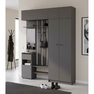 Сбалансированный мебельный ансамбль для средней прихожей, создающий функциональную зону для хранения и подготовки к выходу.