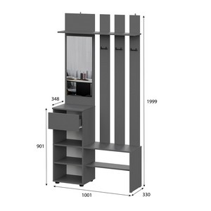 Прихожая Денвер (графит) состоит из двустворчатого шкафа и вешалки с зеркалом и тумбой с ящиком.
