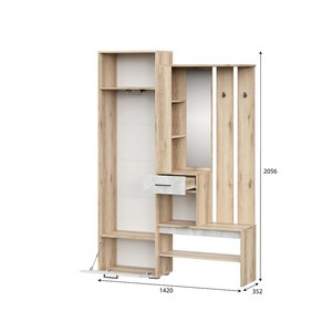 За счет вместительного шкафа с выдвижной штангой, тумбы с выдвижным ящиком и зеркалом, вешалки с крючками и полки вы сможете рационально размесить одежду, обувь и аксессуары.