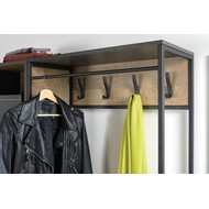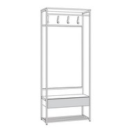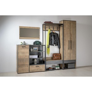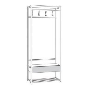 Прихожая Трувор 15.120 N состоит из открытой секции с вешалкой для сезонных вещей, выдвижного ящика и съемной металлической подставки для обуви.