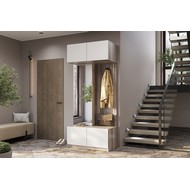 Центральное отделение прихожей оснащено полками небольшой глубины с дверцей с зеркалом и открытым отделением с тремя крючками для повседневной верхней одежды.