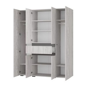 Шкаф 4-х створчатый Мрия ШК-13, Бетон пайн светлый, Графит комплектуется штангами для вешалок.