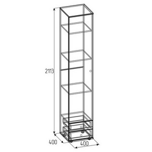 В комплекте три регулируемые по высоте полки и два выдвижных ящика на шариковых направляющих полного выдвижения.