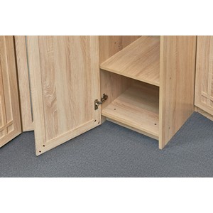 Декоративная раскладка на фасаде позволяет собрать шкаф с открыванием только на левую сторону (петли слева).
