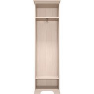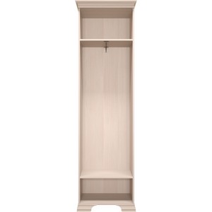 Внутри шкафа расположены две полки и выдвижная перекладина для вешалок.