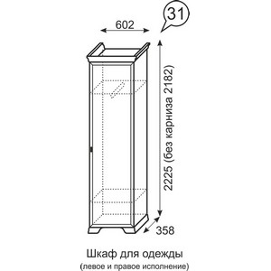Размеры: ширина - 60,2 см, глубина - 35,8 см, высота - 222,5 см.